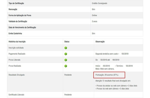 O certificado profissional febraban em ouvidoria terá o prazo de validade.